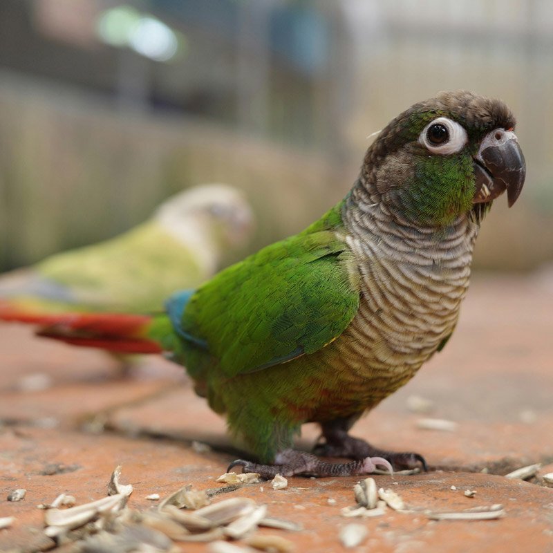 Conures and parakeets are very popular pet bird species. They make good companions because they are friendly, enjoy human interaction, and are lively and fun species. They are also colorful.