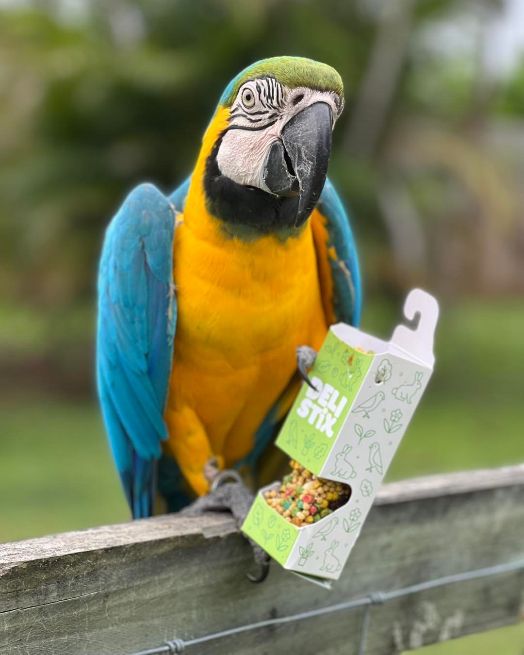 Diet: In the wild, parrots have access to a rainforest full of nutritious and tasty foods that vary with the seasons. Parrots have to search, sometimes for miles, to obtain a variety of foods to maintain their health and they frequently have to work to retrieve their food, such as chipping away at bark, digging through pulp or even into dirt, or breaking open seeds and nuts. When one member of the flock finds a food source, he may call out loudly to his flock mates. To simulate dietary enrichment, encourage your parrot to eat a large variety of safe vegetables, fruits, herbs and leafy greens. Hide foods in puzzle style foraging toys and create 6-10 foraging stations in the cage and on the play stand.