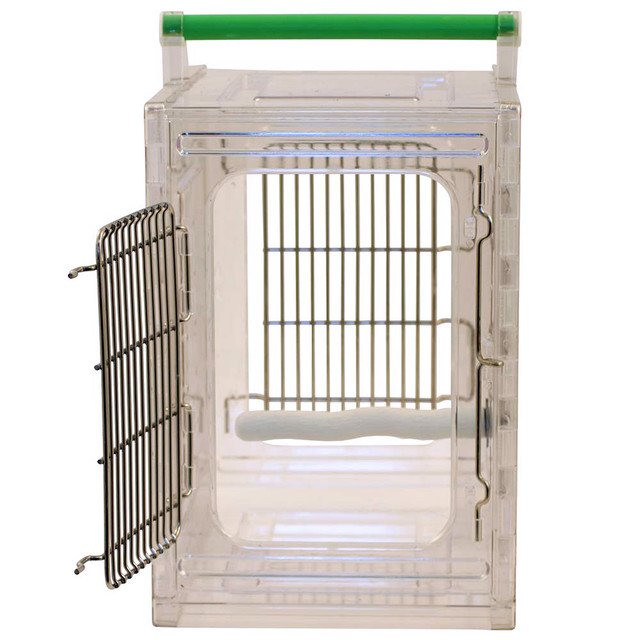 This transparent parrot travel cage gives your parrot a clear view of their surroundings, helping them feel calmer and more secure while you’re on the move. You can also easily keep an eye on your bird during travel. It’s made from high-impact polycarbonate, so it’s tough and durable while staying lightweight. The clear panels let light in from all sides, which can help reduce stress compared to traditional enclosed carriers.